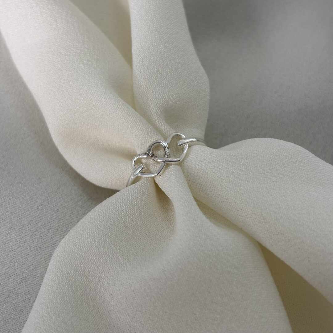 - ANEL 2 CORAÇÕES INFANTIL PRATA