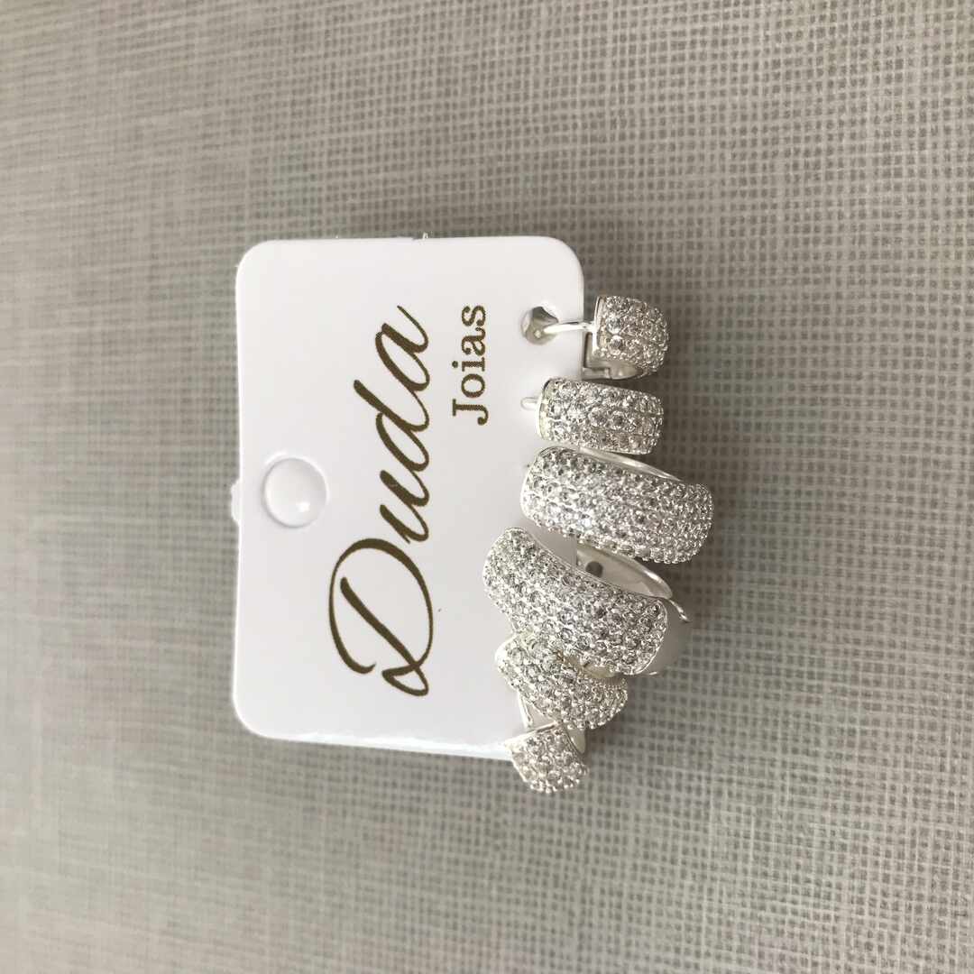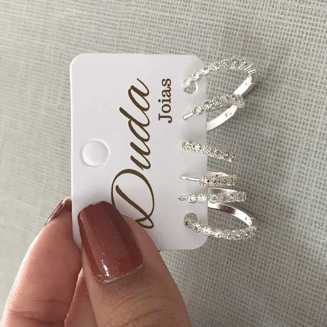 - TRIO DE ARGOLINHAS GROSSAS CRAVEJADAS PRATA